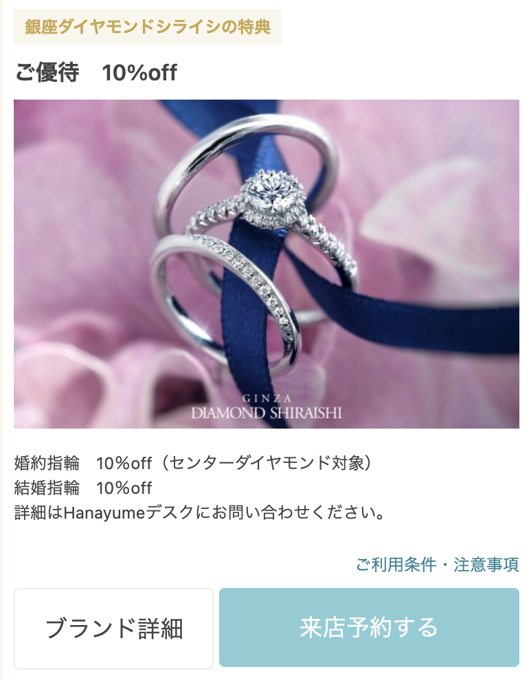 一番おすすめなのが、ハナユメ経由でダイヤモンドシライシに来店予約をする方法です。